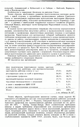 С 5 ноября по 21 ноября зарегистрировано 77 случаев агитации и выступлений за создание крестсоюза. Из них по Центру — 30 (Московская губ. — 13, Орловская — 4, Иваново-Вознесенская — 3, Тамбовская — 1, Рязанская — 2, Ярославская — 1, Вятская — 2, Тверская — 1, Калужская — 1 и Тульская — 2); Северо-Западу — 3 (Псковская губ.); Западу — 8 (Смоленская губ. — 7 и Белорусия — 1); Украине — 22 ( по 14 округам), Северному Кавказу — 4 (Армавирский округ — 2, Ставропольский и Таганрогский округа по 1 факту); в Поволжье — 3 (Саратовская губ.); по Сибири — 3 (Рубцовский округ — 2 и Канский — 1) и в ДВК — 4 (Владивостокский и Амурский округа), в том числе 25 выступлений имели место на разного рода собраниях. По характеру требований выступления за КС распределяются следующим образом: имеющие политический и антисоветский характер — 9, требования крестьянского профсоюза — 12, на почве манифеста ЦИКа СССР — 5, на почве «ножниц» [цен] 14, на почве налога — 2 и прочие — 35.